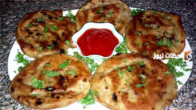 - يتم فتح الرغيف العربي ووضع الحشوة داخله ومن ثمَّ دهن الرغيف بالزيت ووضعه في الصينية.
