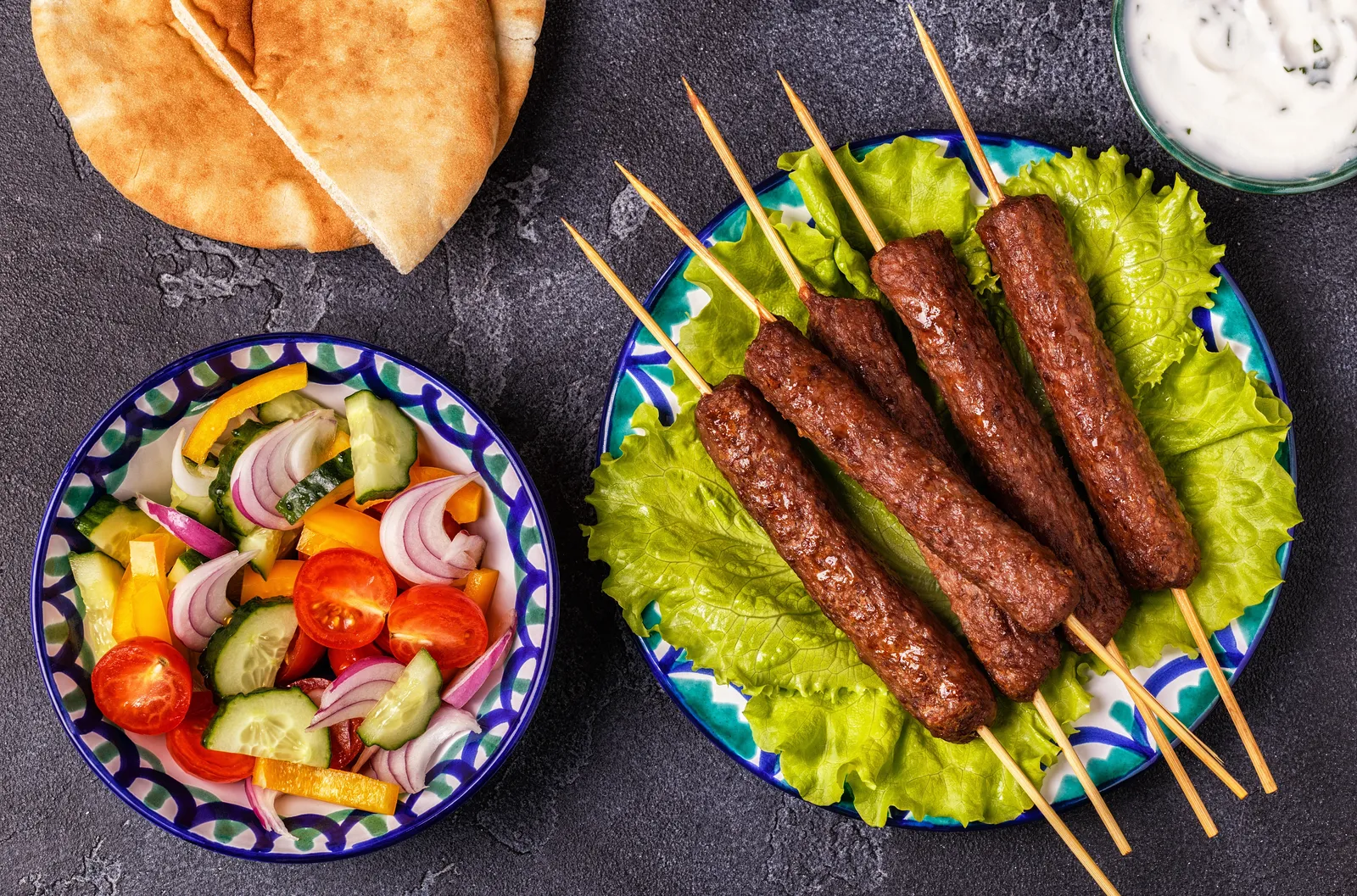- يتم تشكيل الكفتة من خلال استخدام السيخ ثم يتم رصها في طبق.