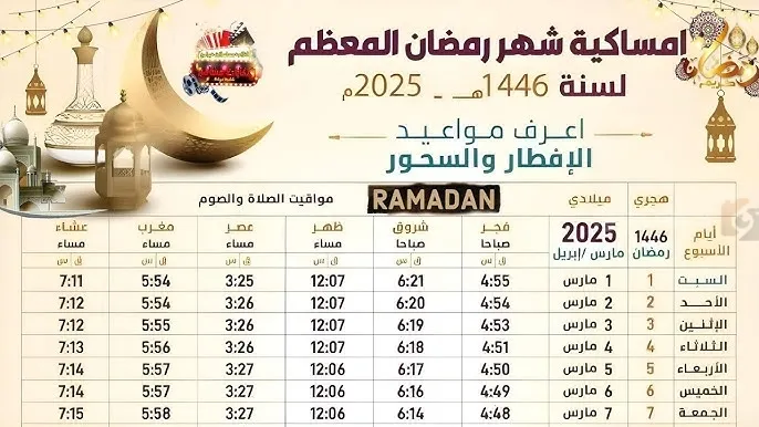 أهل علينا شهر رمضان المبارك شهر الخير والبركة، ومع حلوله تعم معه السعادة والبهجة في قلوب الجميع، فهو من أفضل الشهور التي ينتظرها جميع المسلمين على مدار العام، وذلك لكي يقوموا بالاهتمام بالعبادات والتقرب من الله سبحانه وتعالى، ويتم الإعلان عن امساكية شهر رمضان المبارك، ليكون كل المسلمين على وعي بمواعيد الصلاة لكي يقوموا بالالتزام بها، ومعرفة مواعيد الافطار والسحور.