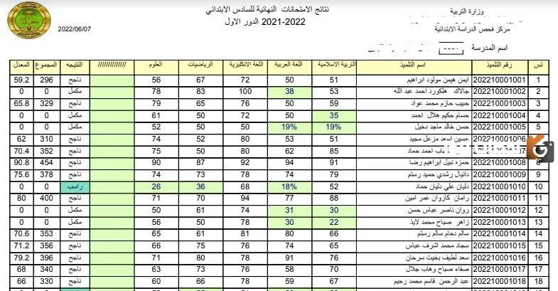 نتائج الصف السادس الابتدائي 2023 الدور الثاني