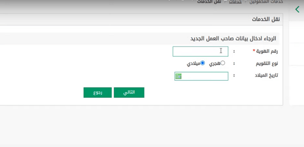 - في البداية يجب أن يكون قد تم تقديم طلب نقل الكفالة من عند الكفيل الجديد.