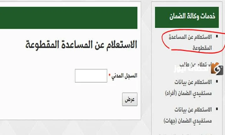 - في الصفحة الرئيسية للموقع، ابحث عن خيار “الاستعلام عن المساعدة المقطوعة”.