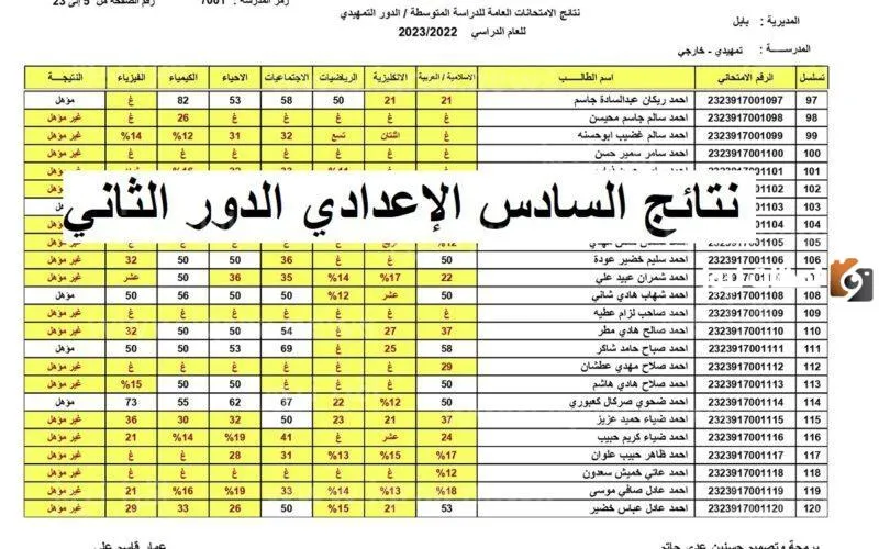 نتائج السادس الاعدادي الدور الثاني 2023 موقع نتائجنا