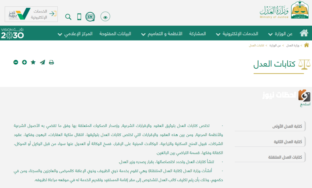 توثيق العقود من خلال الموقع الإلكتروني لوزارة العدل