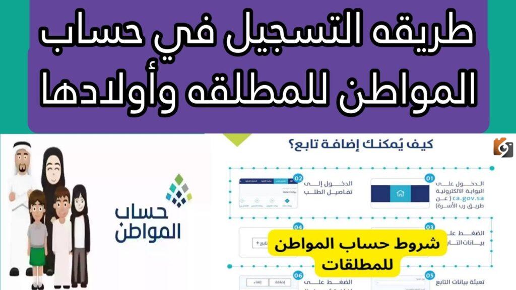 يعمل حساب المواطن على تقديم الدعم المالي للعديد من الفئات الاجتماعية والتي من بينهم المرأة المطلقة، حيث تستطيع التسجيل في البرنامج وإضافة التابعين وتقديم جميع المستندات المطلوبة لضمان الموافقة على طلب التسجيل.
