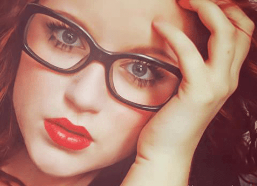 صورة بروفايل فيسبوك توحي بشخصية شرسة وعنيدة، لفتاة ترتدي نظارة مميزة الشكل، وتضع طلاء أظافر أحمر خلاب.