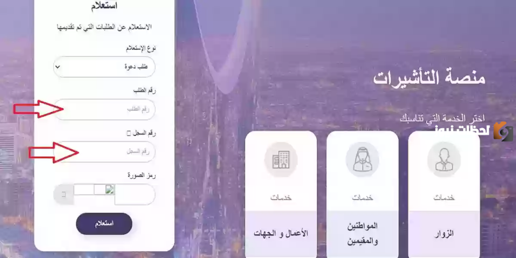 - اكتب رمز التحقق المرئي الموجود في نهاية الصفحة اضغط على كلمة الاستعلام الموجودة في نهاية الصفحة.