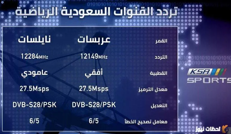 معدل الترميز | معامل تصحيح الخطأ | استقطاب التردد | القمر الصناعي | تردد القناة |