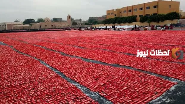 - يتم وضع معجون الطماطم الكثيف في صواني من الحديد الرفيع مع التأكد من طلي الصواني بالبارافين.