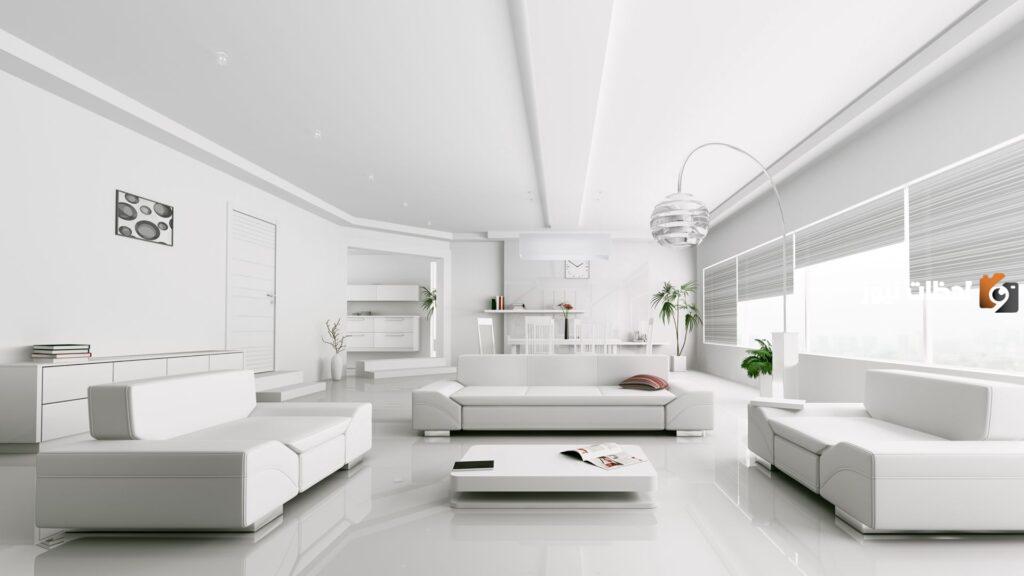 - لدينا أيضًا الأبيض القوي وهو يميل إلى الرمادي ويمكن استخدامه في المنزل ليعطي حداثة للمكان ويزيد من مساحته.
