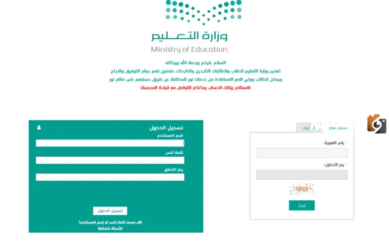 الاستعلام عن نتائج نظام نور برقم الهوية 1447