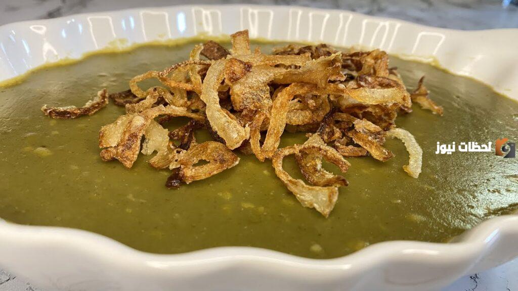 - ثم نقوم في النهاية بوضع البصارة في أطباق التقديم ونقوم بتزيينها بالبصل والثوم.