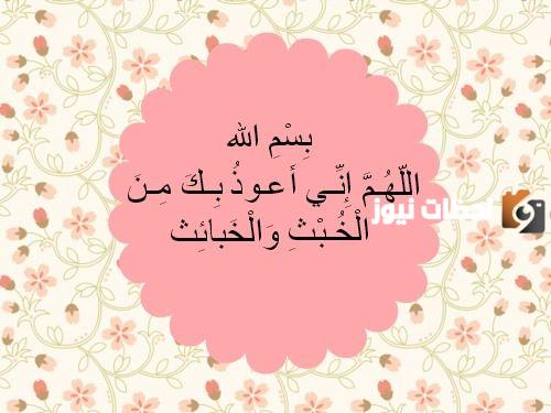حيث ورد عن النبي صلى الله عليه وسلم أنه قبل الدخول إلى الحمام كان يقول “اللَّهُمَّ إنِّي أعُوذُ بكَ مِنَ الخُبُثِ والخَبَائِثِ” [رواه أنس بن مالك].