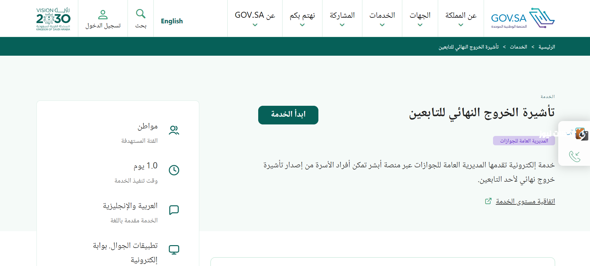 بإمكانك الحصول على تأشيرة الخروج النهائي من المملكة العربية السعودية من خلال اتباع الخطوات التالية: